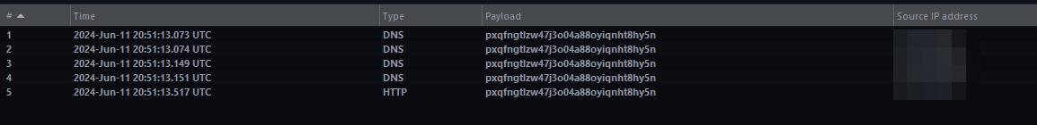 I injected this payload into the suspicious parameter. Upon checking the Burp Collaborator, I confirmed the receipt of the request, validating the existence of the vulnerability.