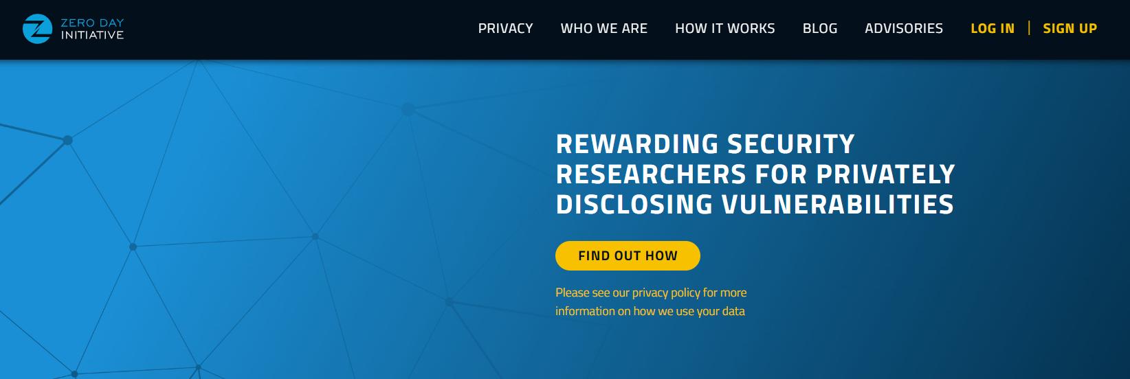 Zero Day Initiative (TrendMicro): This program offers rewards for unknown vulnerabilities affecting widely used products, helping to protect end-users by notifying vendors for patches (https://www.zerodayinitiative.com/).